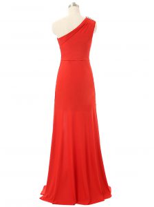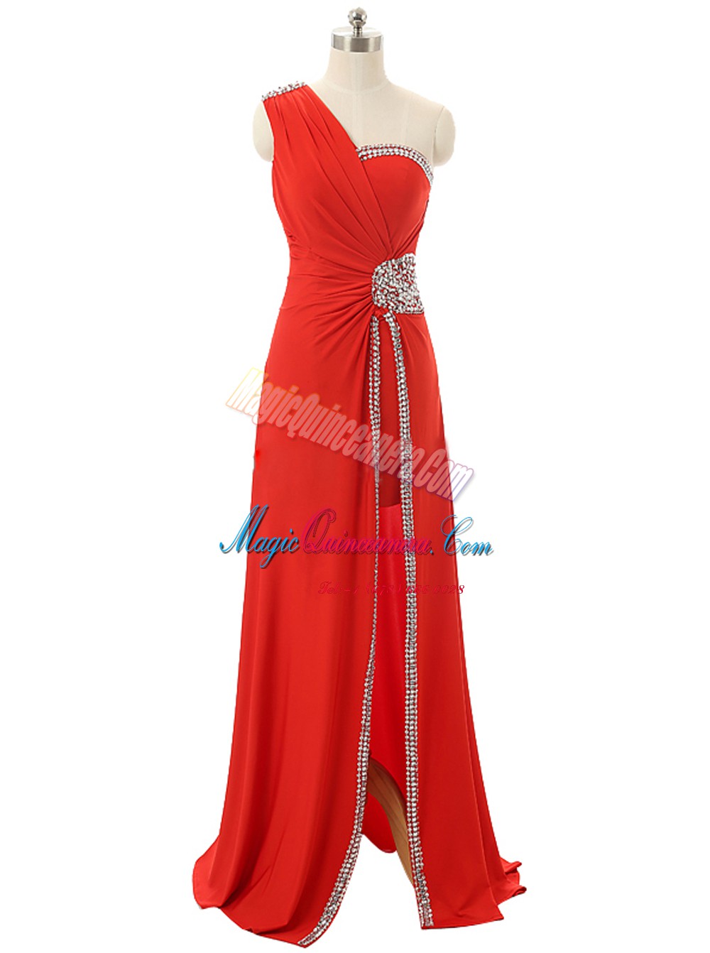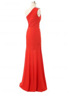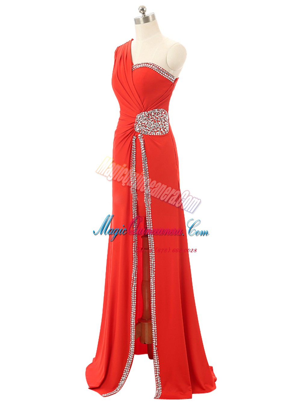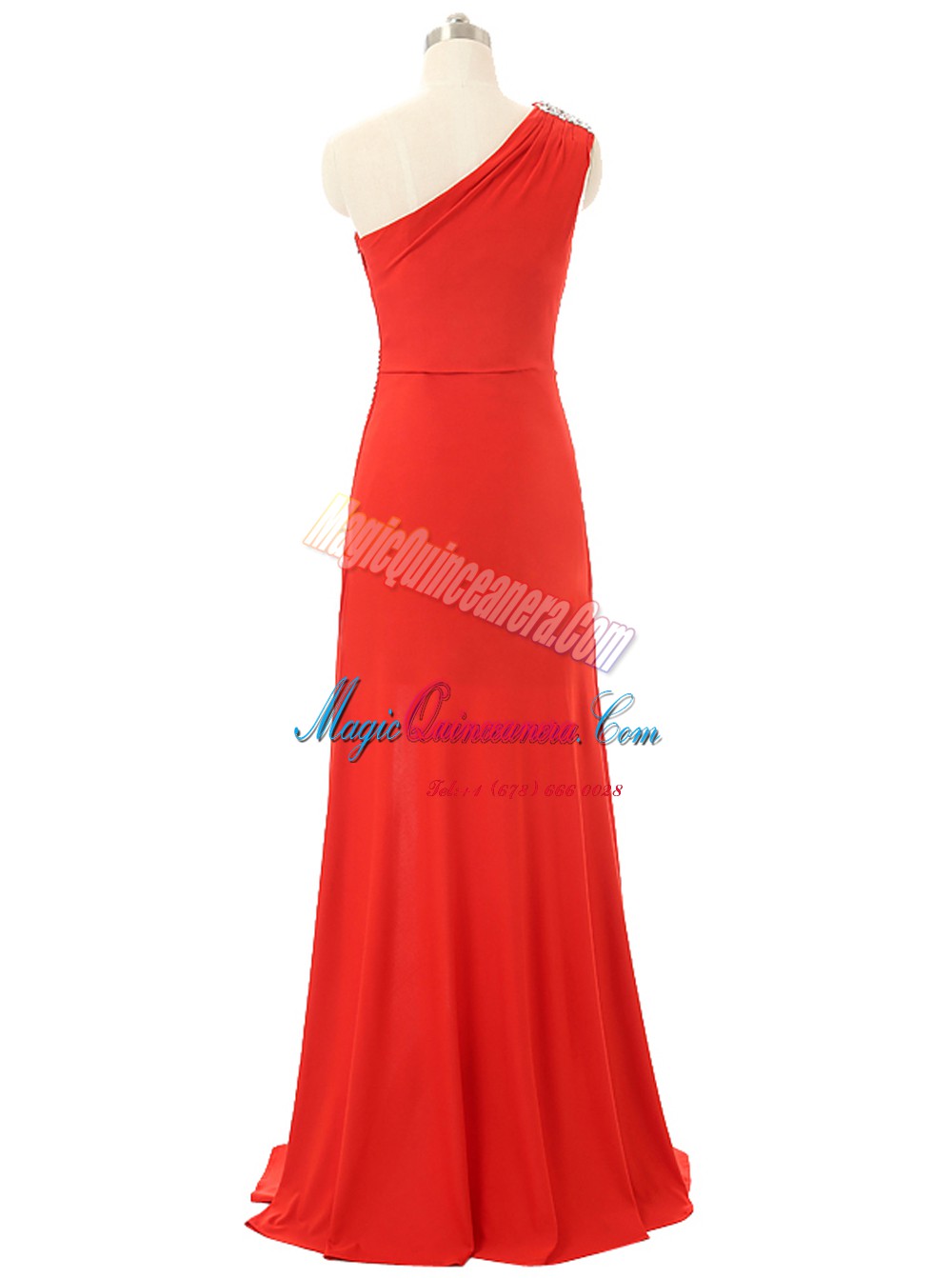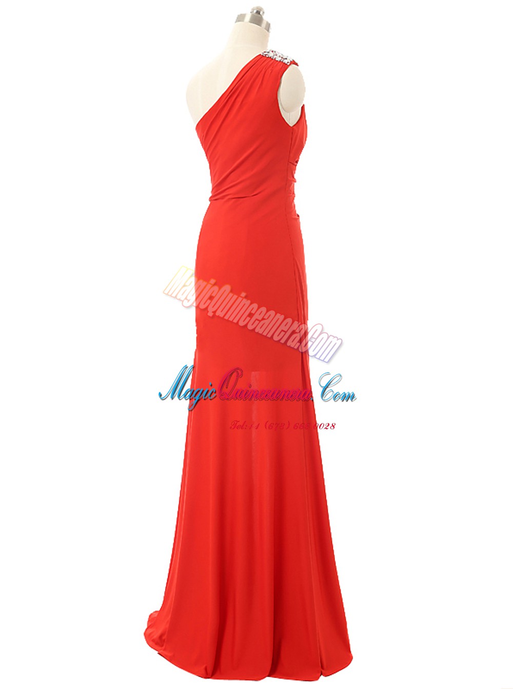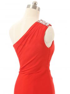Sumptuous Red Homecoming Dress Prom and Party and For with Beading and Ruching One Shoulder Sleeveless Zipper