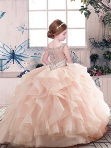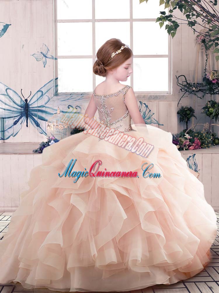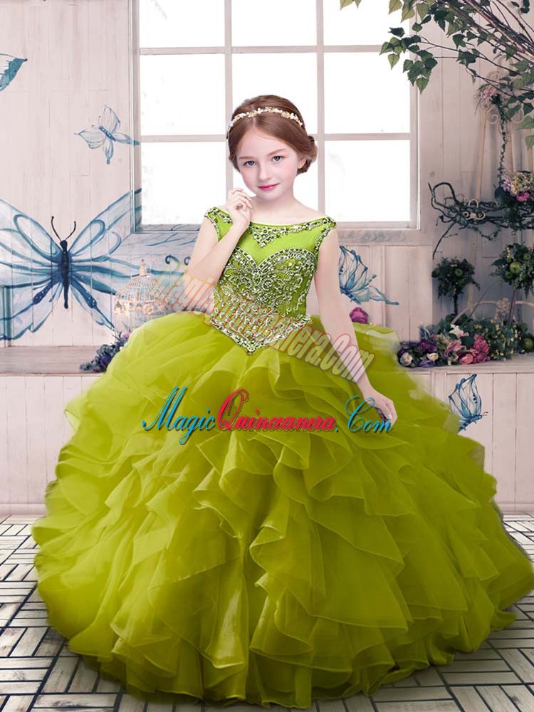 Super Floor Length Zipper Child Pageant Dress Olive Green for Party and Sweet 16 and Wedding Party with Beading and Ruffles