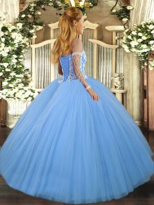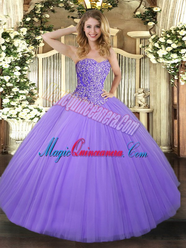 Super Lavender Tulle Lace Up Sweetheart Sleeveless Floor Length Ball Gown Prom Dress Beading