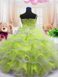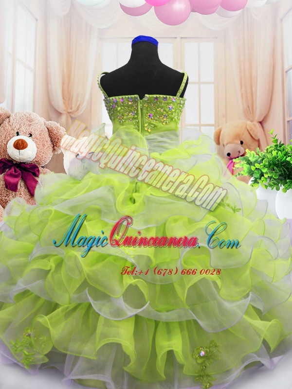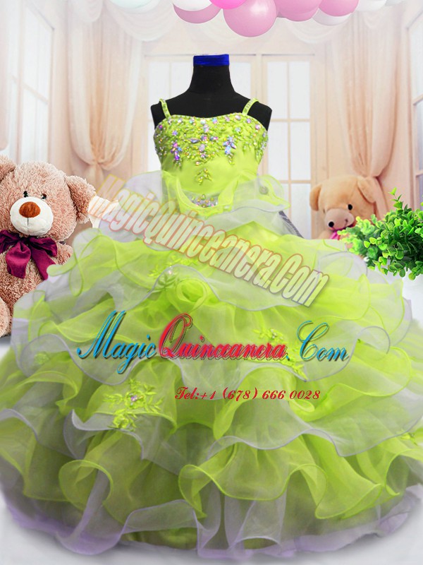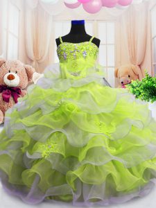 Super Light Yellow Organza Zipper Spaghetti Straps Sleeveless Floor Length Child Pageant Dress Beading and Ruffled Layers