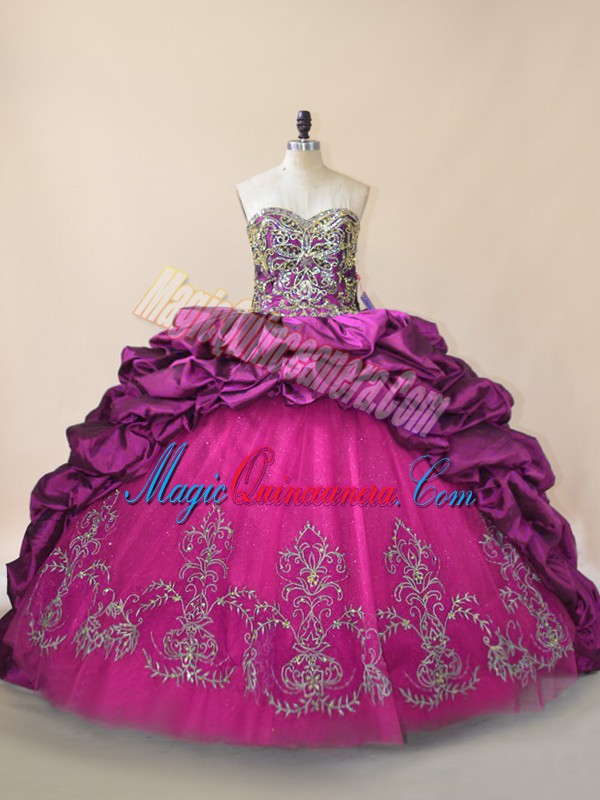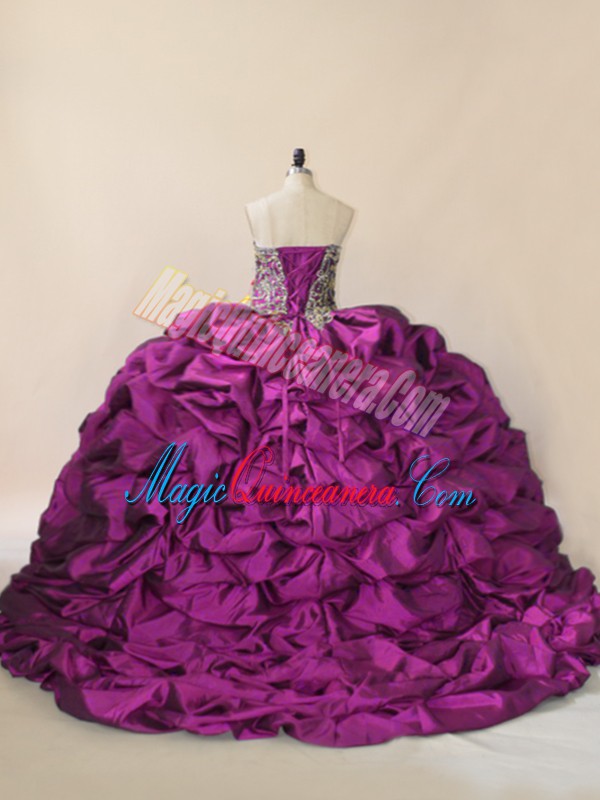 Super Purple Sweetheart Lace Up Beading and Pick Ups Quinceanera Gown Brush Train Sleeveless
