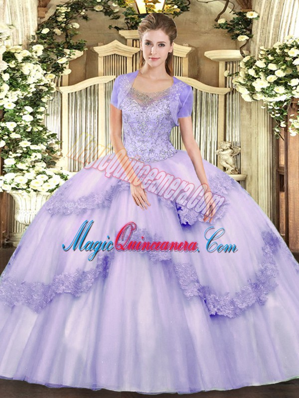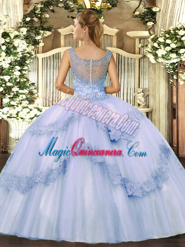 Superior Lavender Tulle Clasp Handle Scoop Sleeveless Floor Length Quinceanera Dress Beading and Appliques