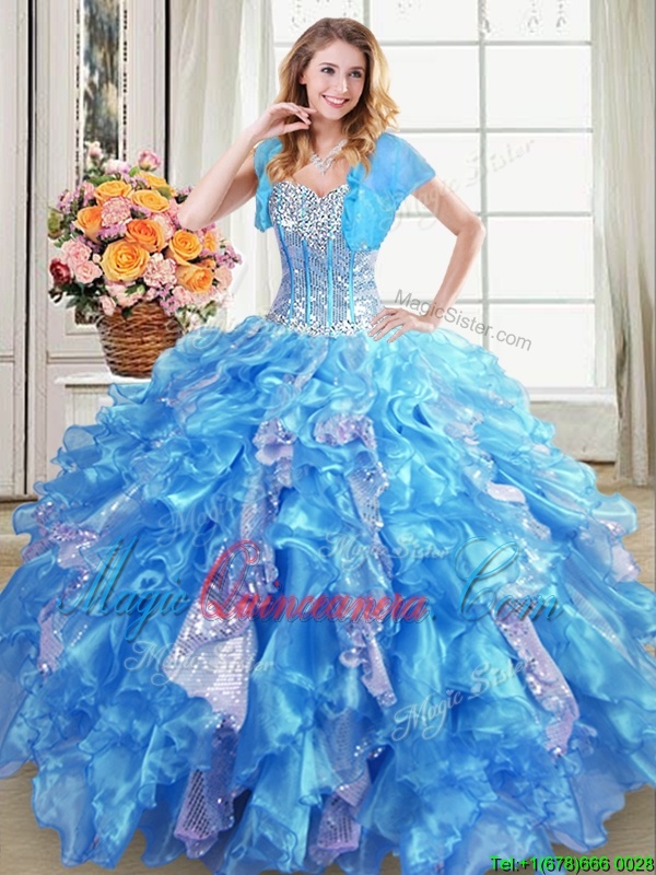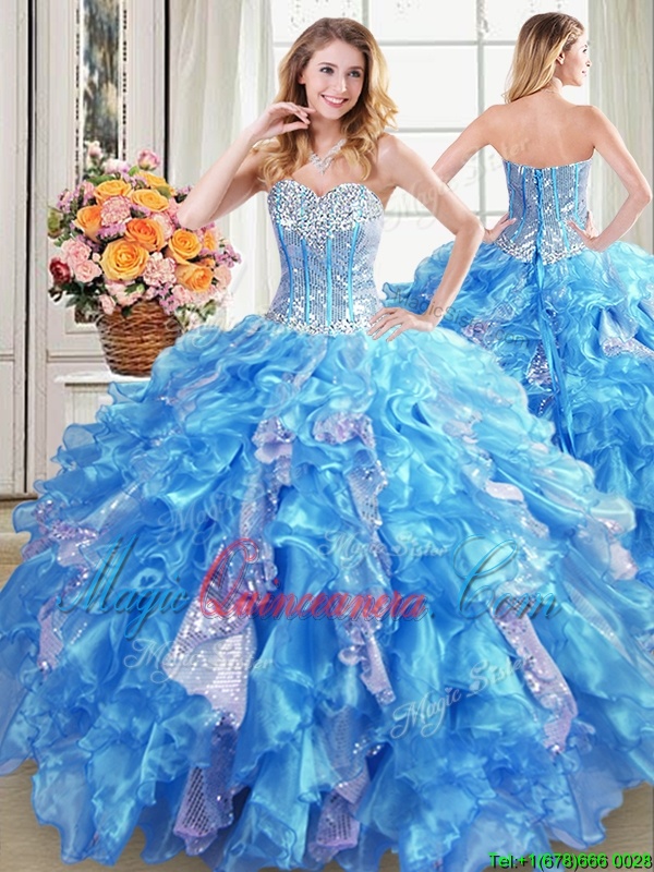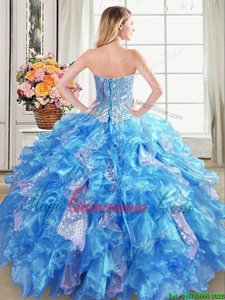 , Superior Sleeveless Beading and Ruffles and Sequins Lace Up Sweet 16 Dresses