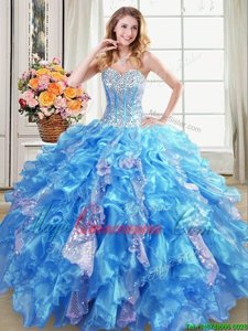 Superior Sleeveless Beading and Ruffles and Sequins Lace Up Sweet 16 Dresses