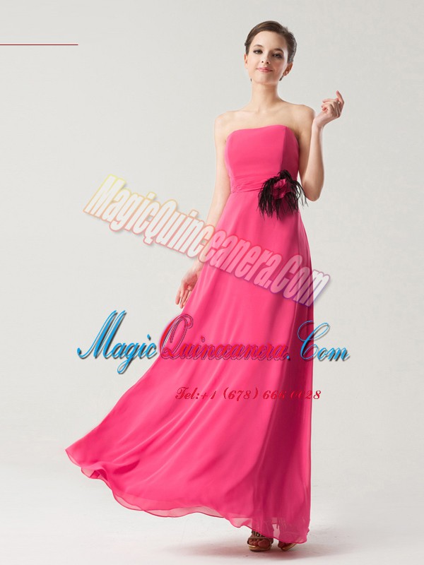 Sweet Hot Pink Chiffon Zipper Mother Of The Bride Dress Sleeveless Floor Length Hand Made Flower - Magic Quinceanera