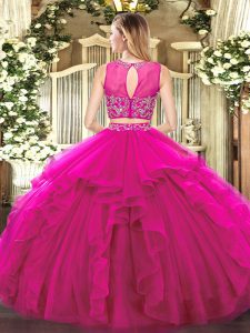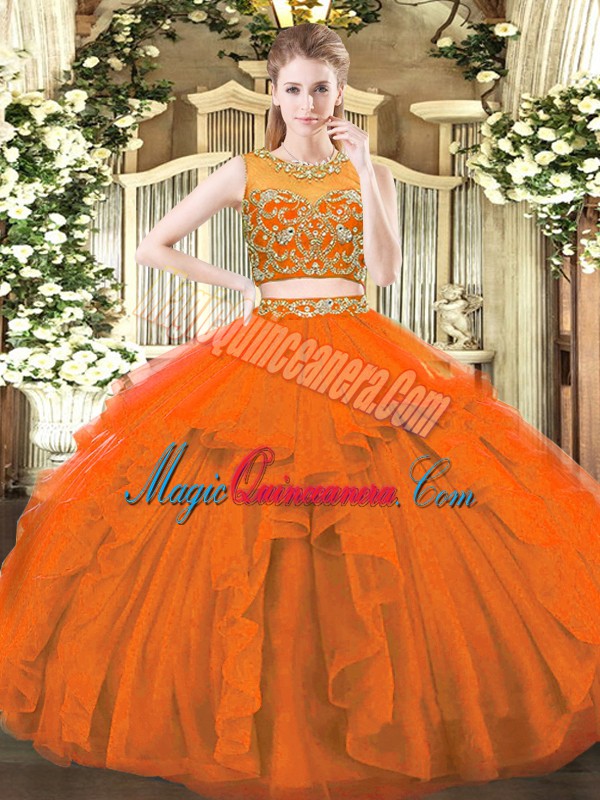 Sweet Rust Red Scoop Neckline Beading and Ruffles Quinceanera Dresses Sleeveless Zipper