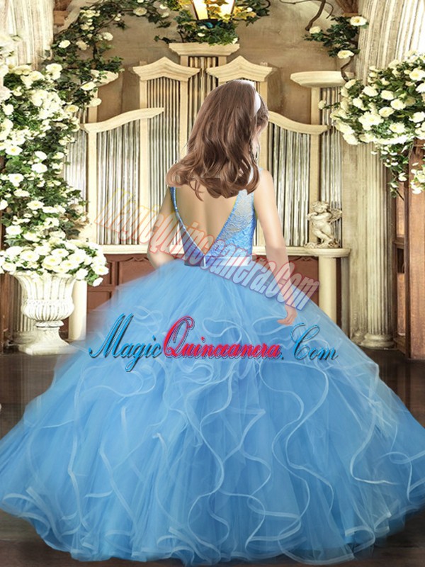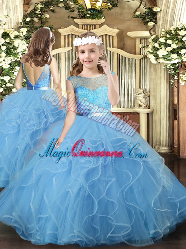 Sweet Sleeveless Ruffles Backless Pageant Gowns For Girls
