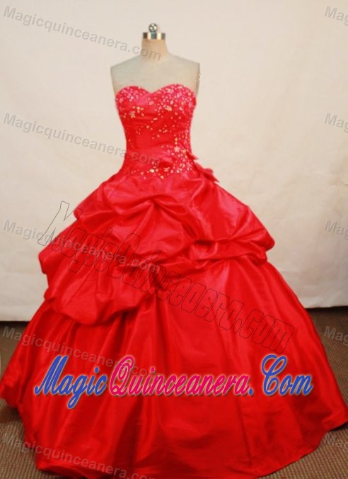 Sweetheart Appliques Pick-ups Red Floor Length Quinceanera Gown