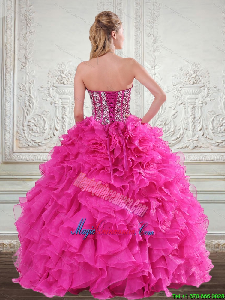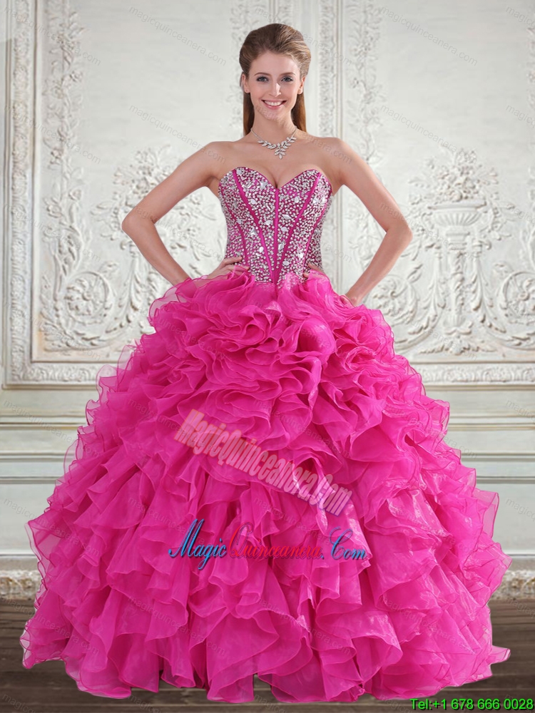 , Sweetheart Hot Pink 2015 Quinceanera Gown with Beading and Ruffles