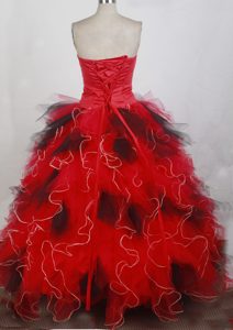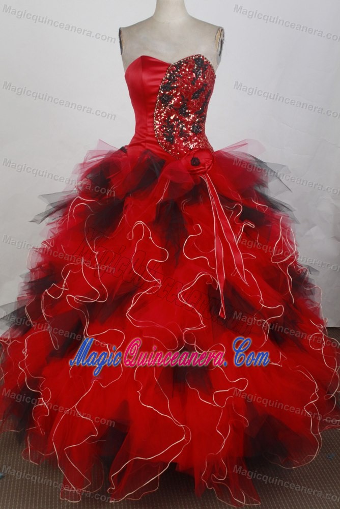 Sweetheart Quinceanera Dress with Ruffles and Beading in Red and Black