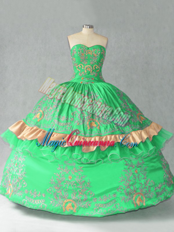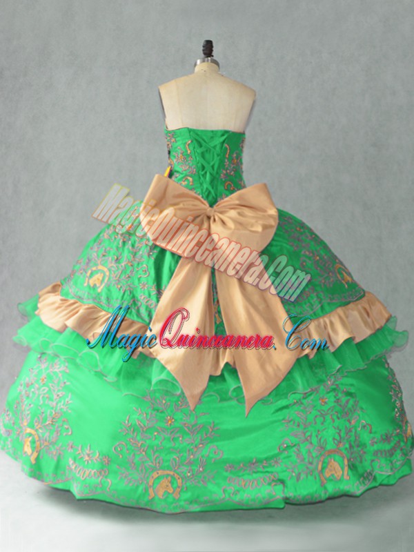 Sweetheart Sleeveless Ball Gown Prom Dress Floor Length Embroidery and Bowknot Green Organza