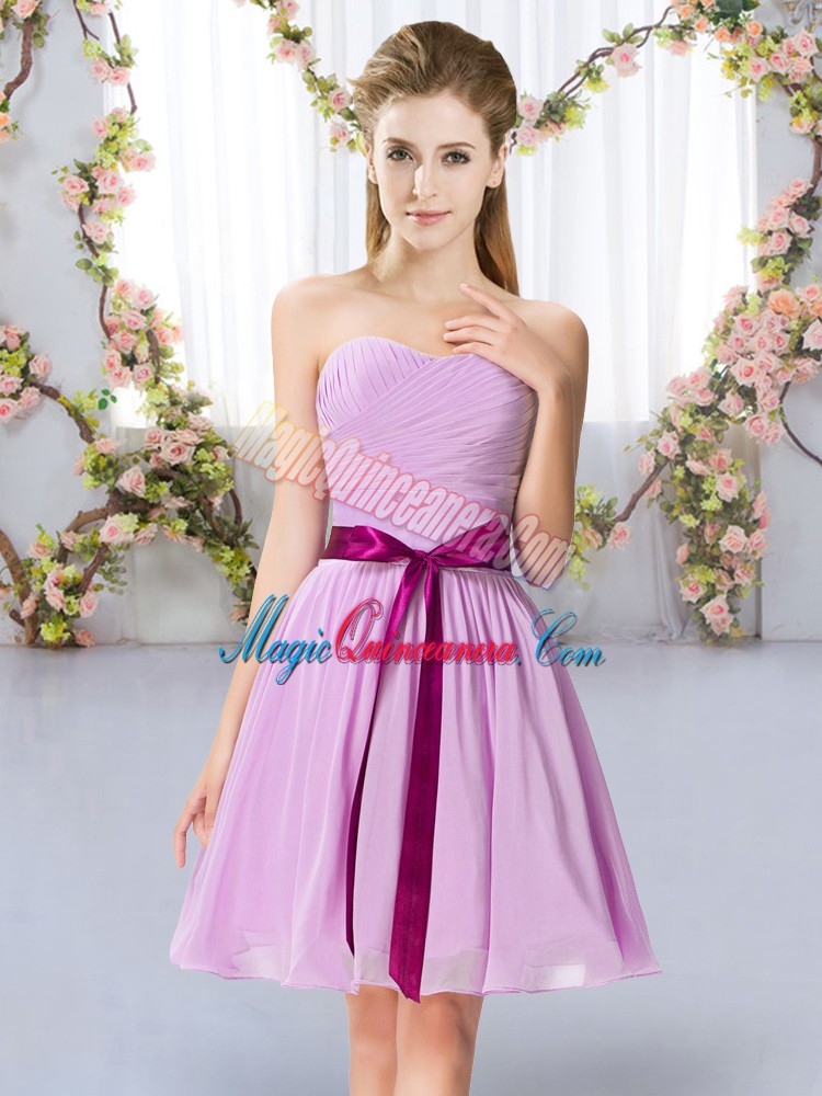 , Sweetheart Sleeveless Chiffon Damas Dress Belt Lace Up