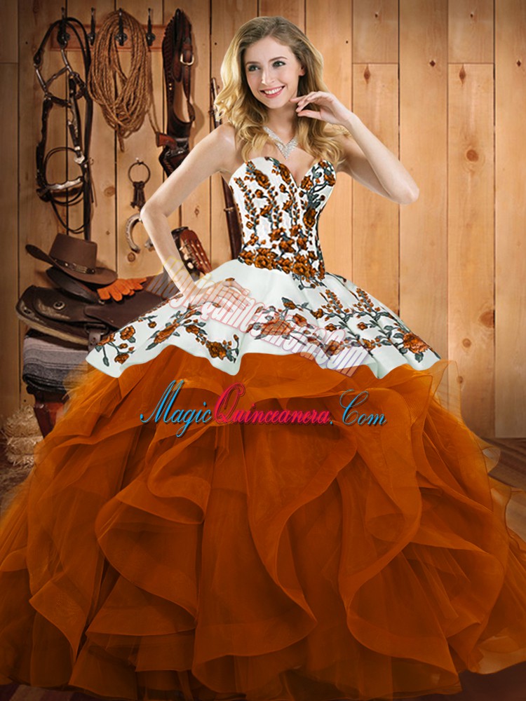 , Sweetheart Sleeveless Lace Up 15th Birthday Dress Rust Red Satin and Organza