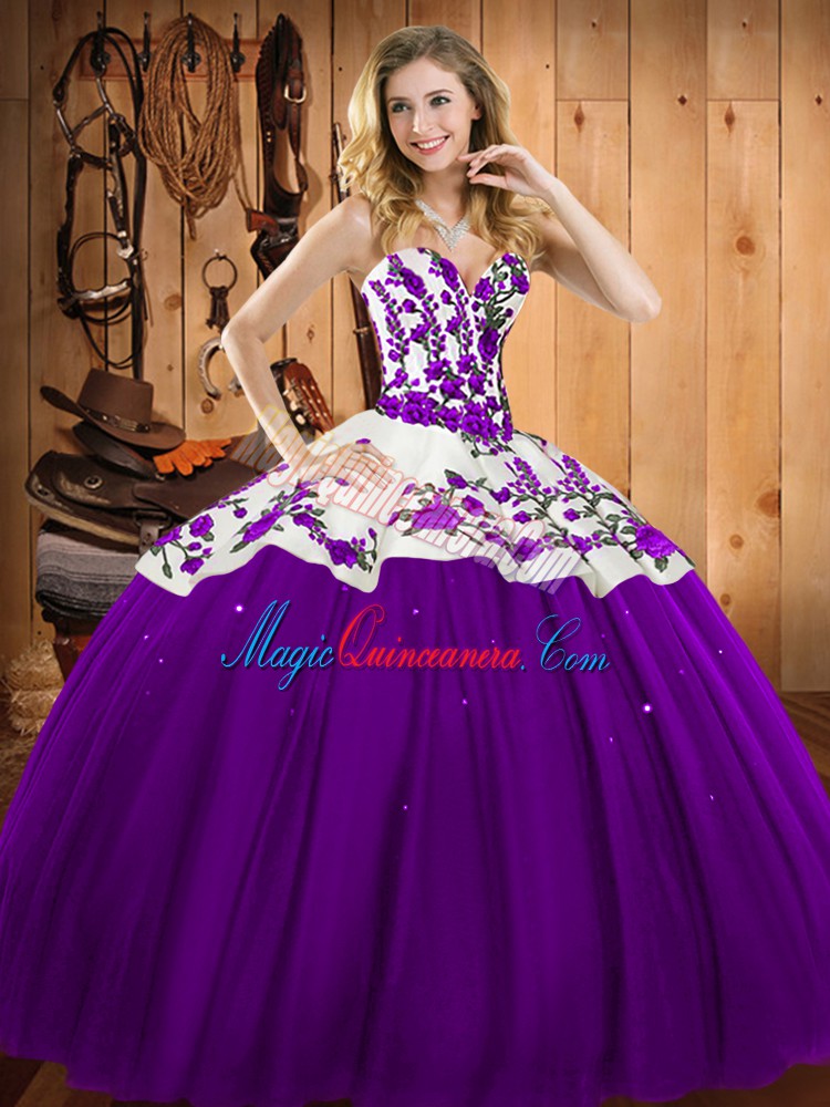 , Sweetheart Sleeveless Lace Up Quinceanera Dress Eggplant Purple Satin and Tulle