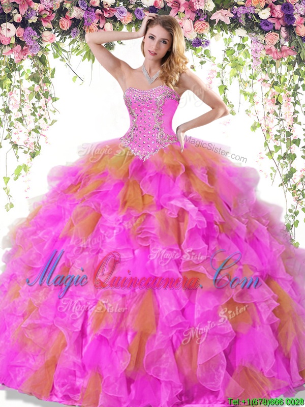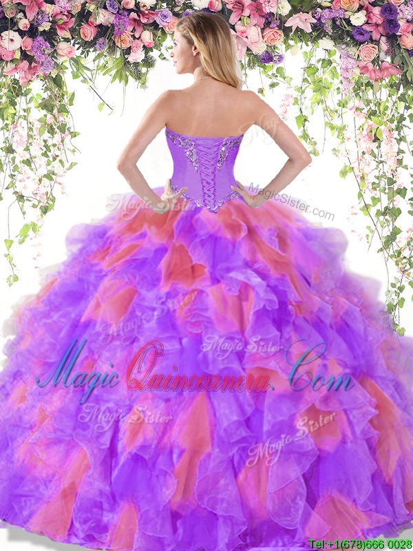 Sweetheart Sleeveless Lace Up Quinceanera Gowns Multi-color Organza