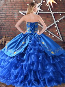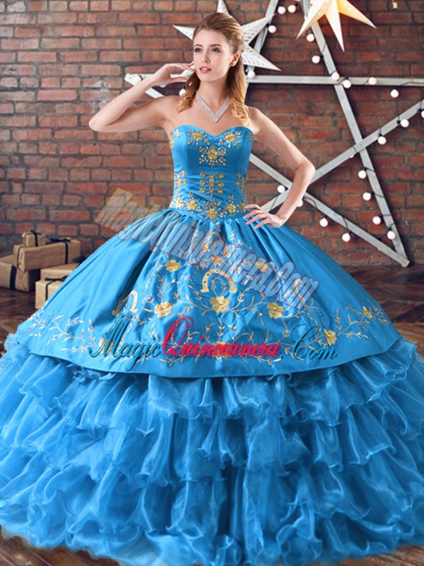 , Sweetheart Sleeveless Lace Up Vestidos de Quinceanera Blue Satin and Organza