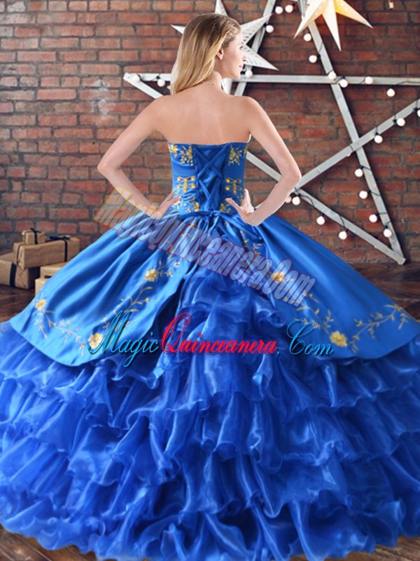 Sweetheart Sleeveless Lace Up Vestidos de Quinceanera Blue Satin and Organza
