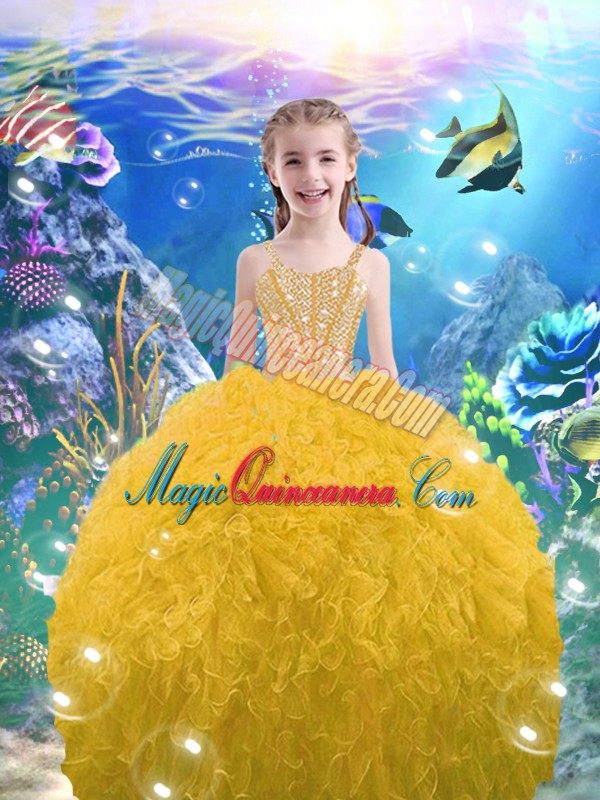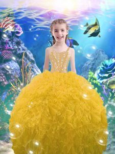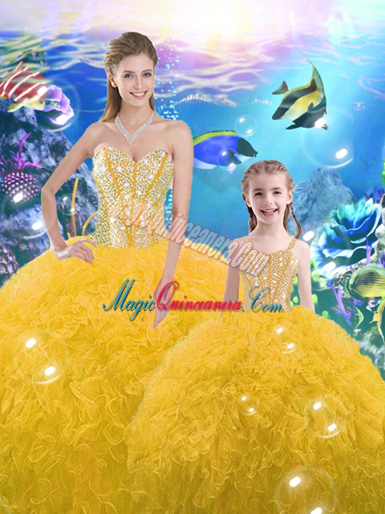 Sweetheart Sleeveless Lace Up Vestidos de Quinceanera Gold Organza