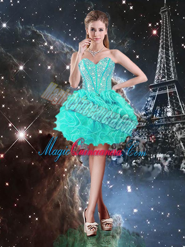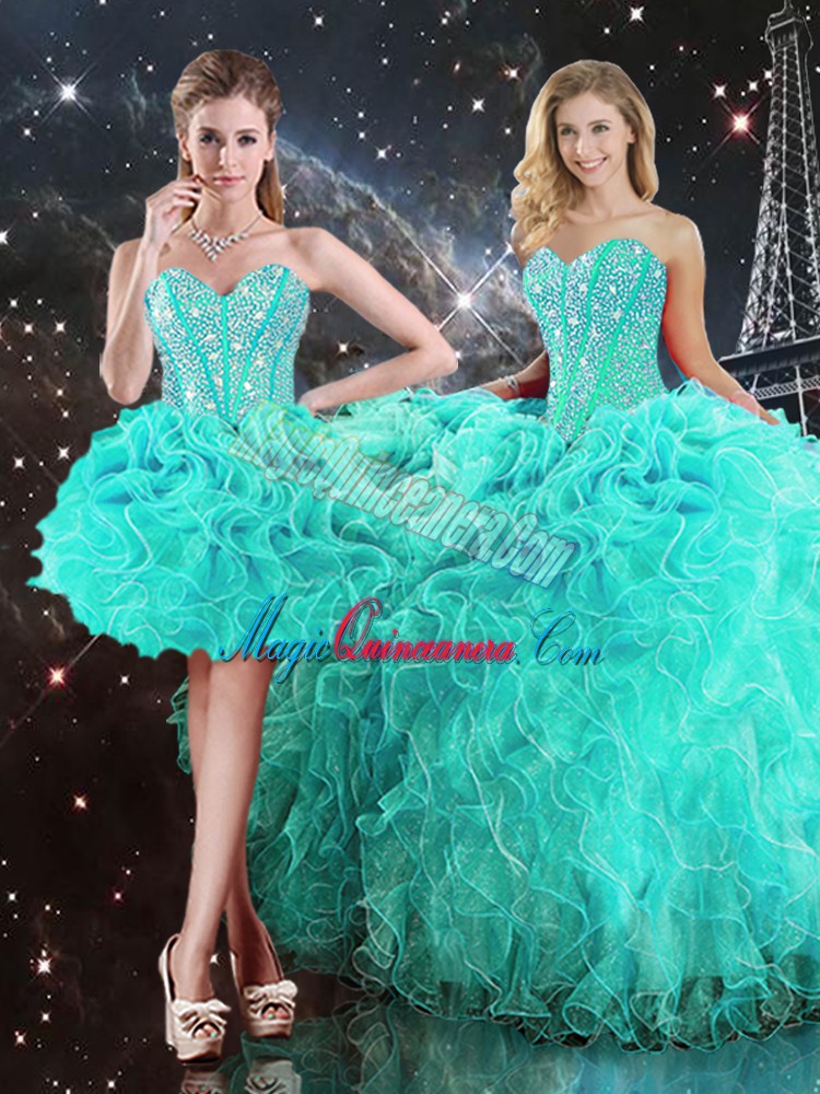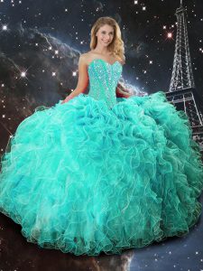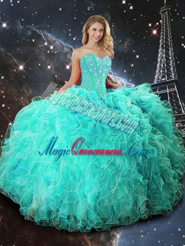 Sweetheart Sleeveless Organza 15 Quinceanera Dress Beading and Ruffles Lace Up