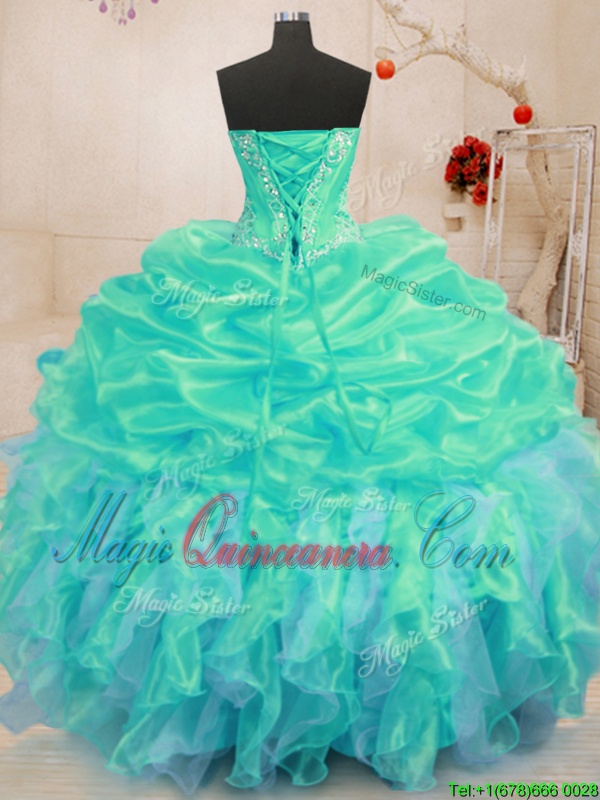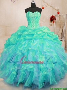 Sweetheart Sleeveless Organza Quince Ball Gowns Beading and Ruffles Lace Up
