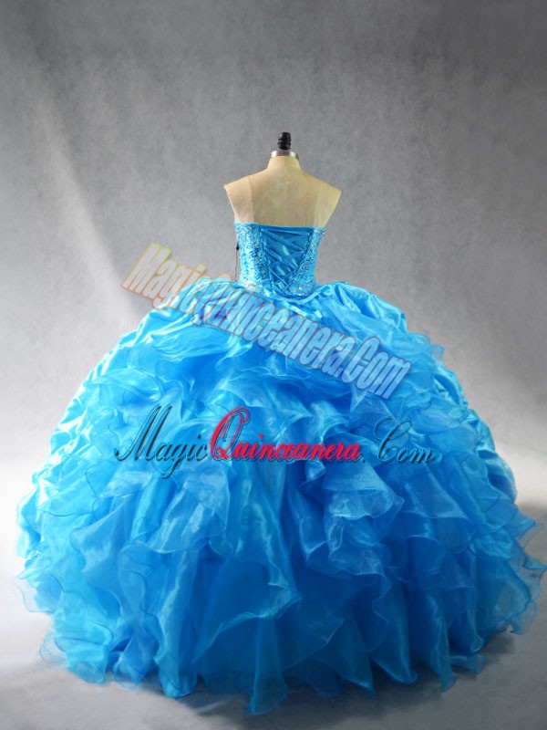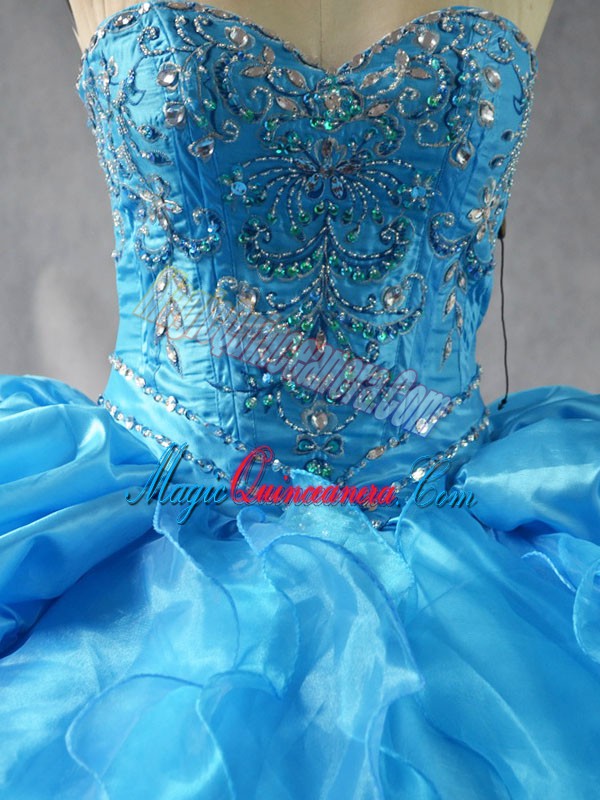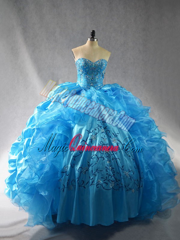 Sweetheart Sleeveless Organza Sweet 16 Dresses Embroidery and Ruffles Lace Up