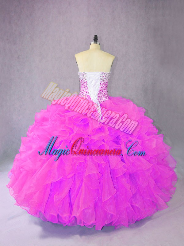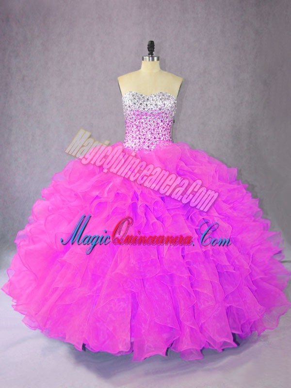 Sweetheart Sleeveless Organza Sweet 16 Dresses Ruffles Lace Up