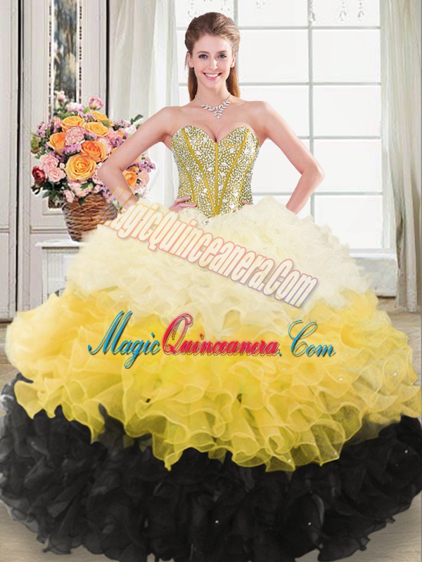 , Sweetheart Sleeveless Organza Vestidos de Quinceanera Beading and Ruffles Zipper