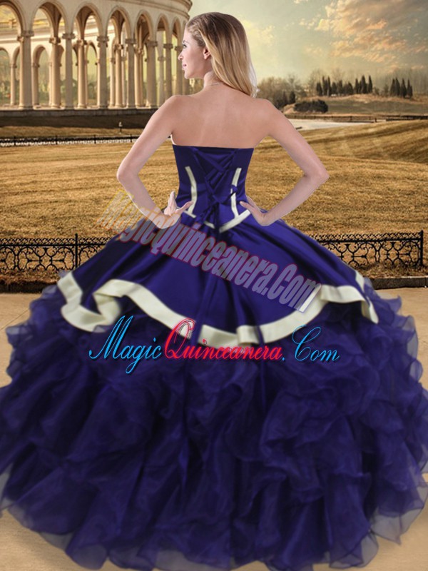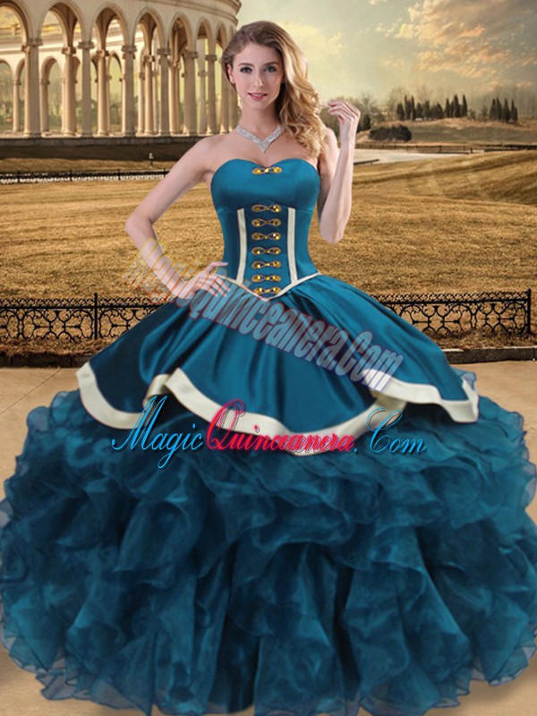 Sweetheart Sleeveless Quinceanera Dress Floor Length Beading and Ruffles Teal Organza