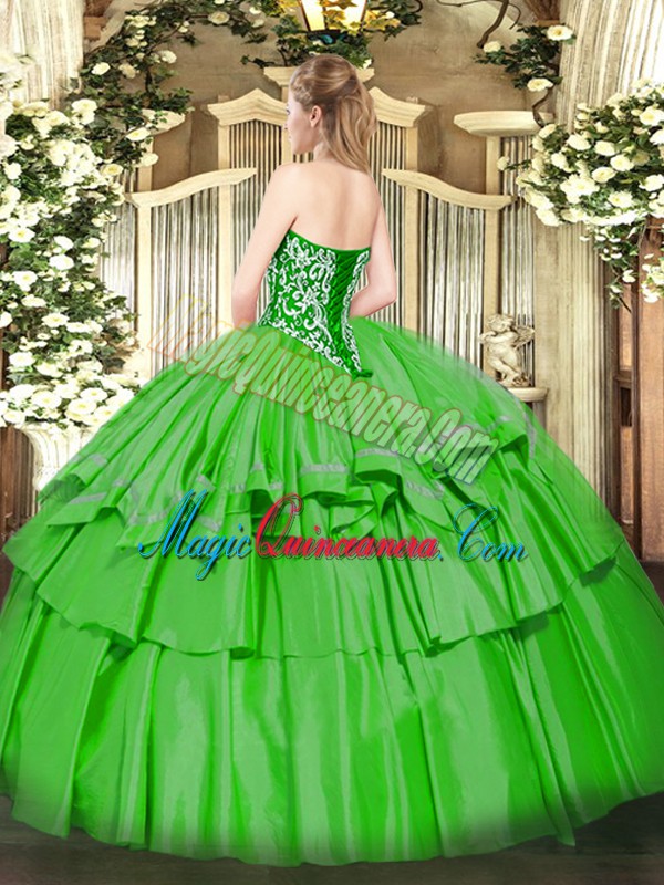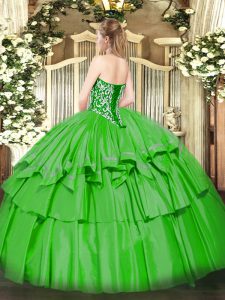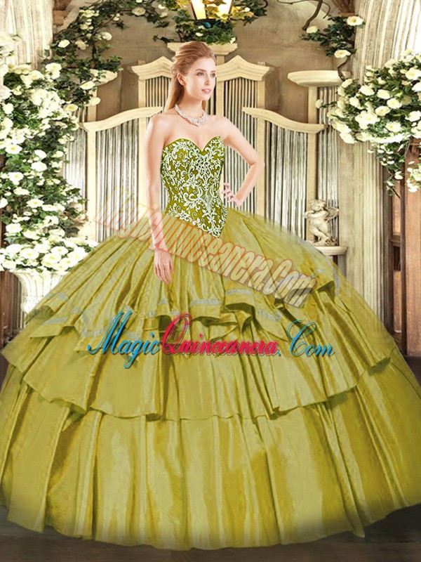 Sweetheart Sleeveless Quinceanera Gown Floor Length Beading and Ruffled Layers Olive Green Organza and Taffeta