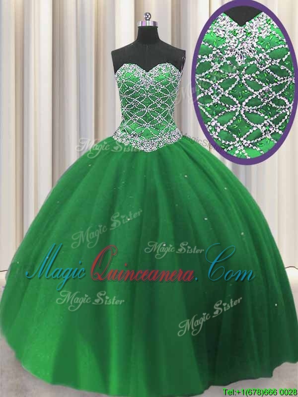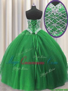 Sweetheart Sleeveless Quinceanera Gowns Floor Length Beading Green Tulle