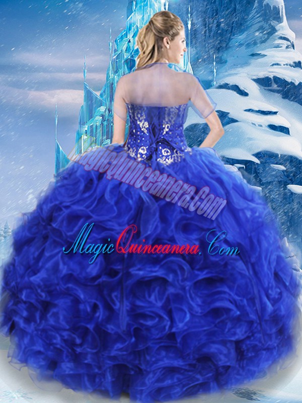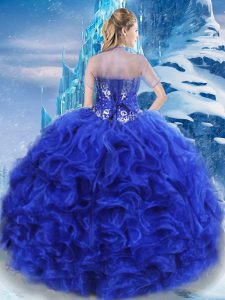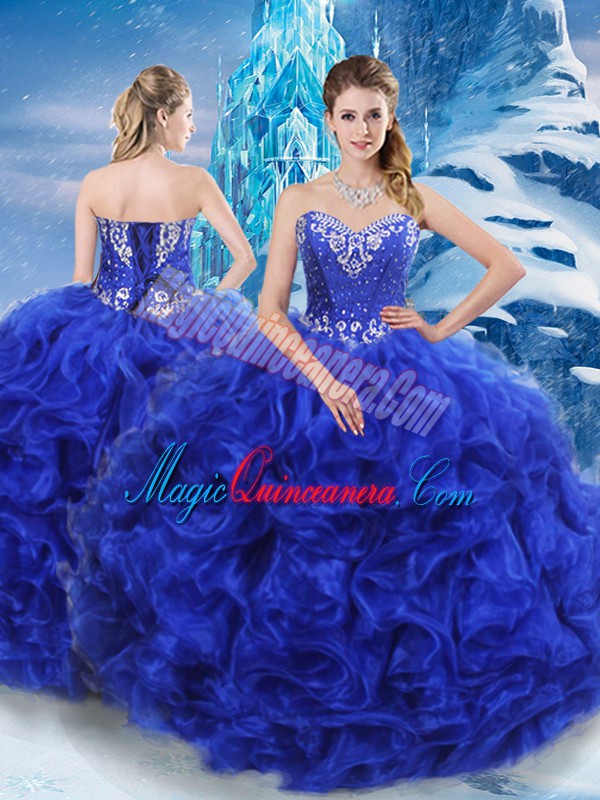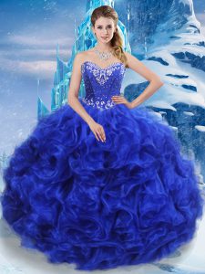 Sweetheart Sleeveless Sweet 16 Quinceanera Dress Floor Length Beading Royal Blue Organza