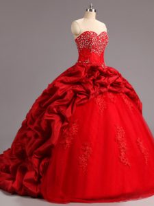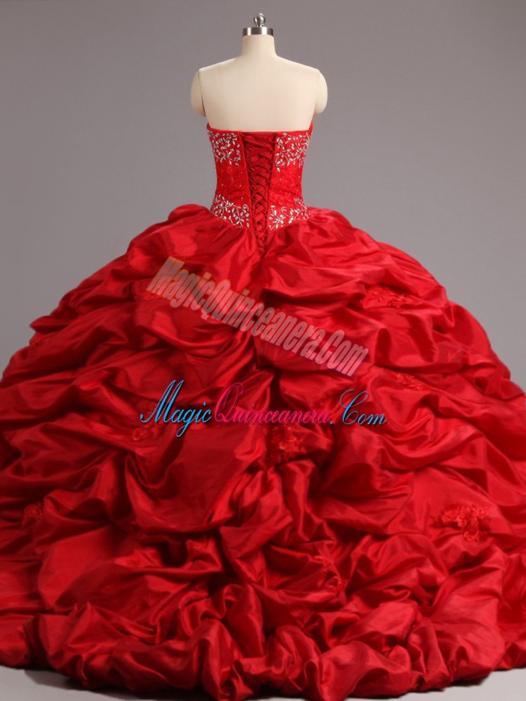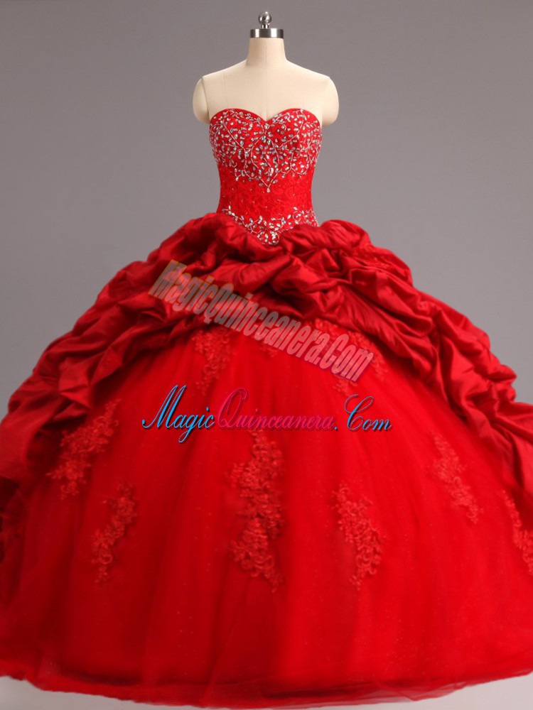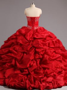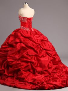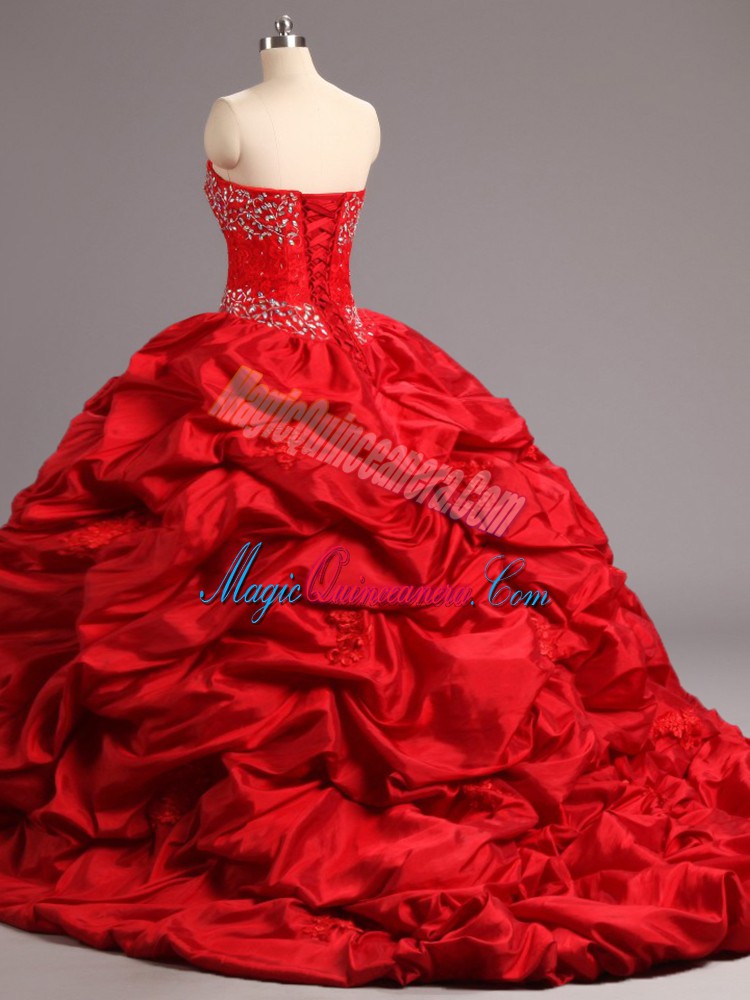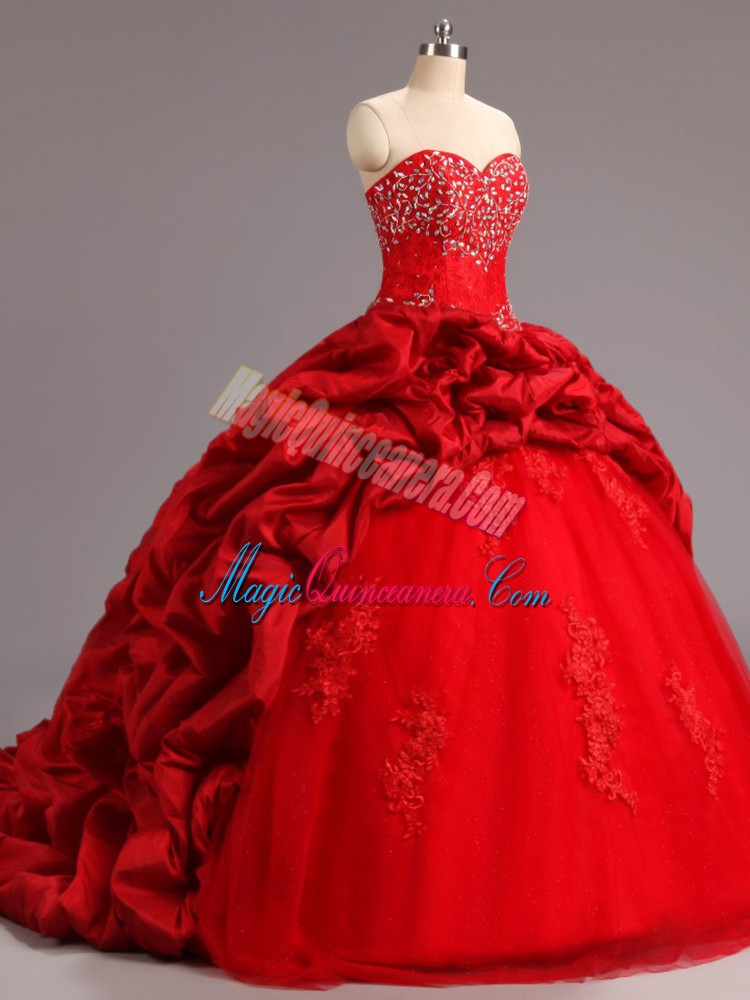 Sweetheart Sleeveless Taffeta and Tulle Vestidos de Quinceanera Beading and Appliques and Pick Ups Court Train Lace Up