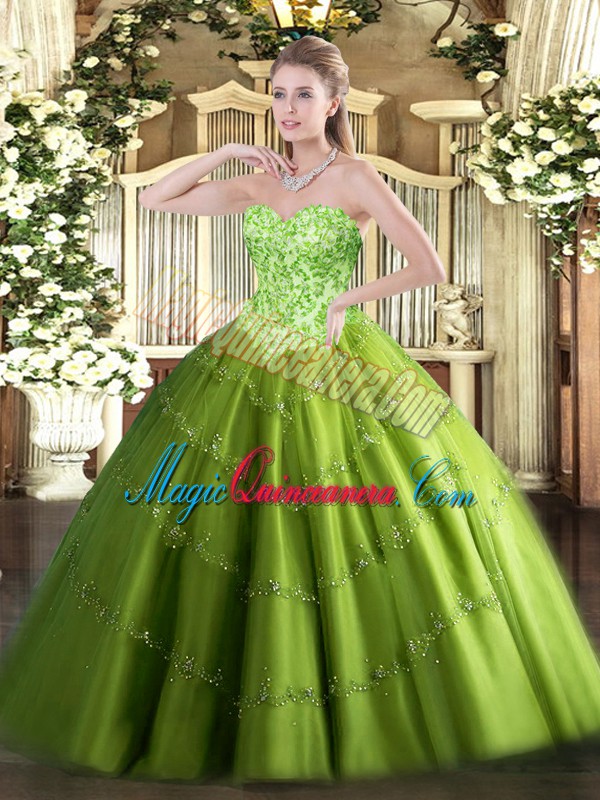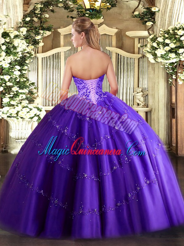 Sweetheart Sleeveless Tulle Sweet 16 Quinceanera Dress Appliques Lace Up