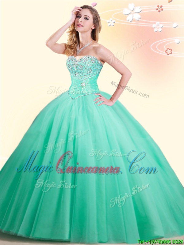 , Sweetheart Sleeveless Tulle Sweet 16 Quinceanera Dress Beading Lace Up