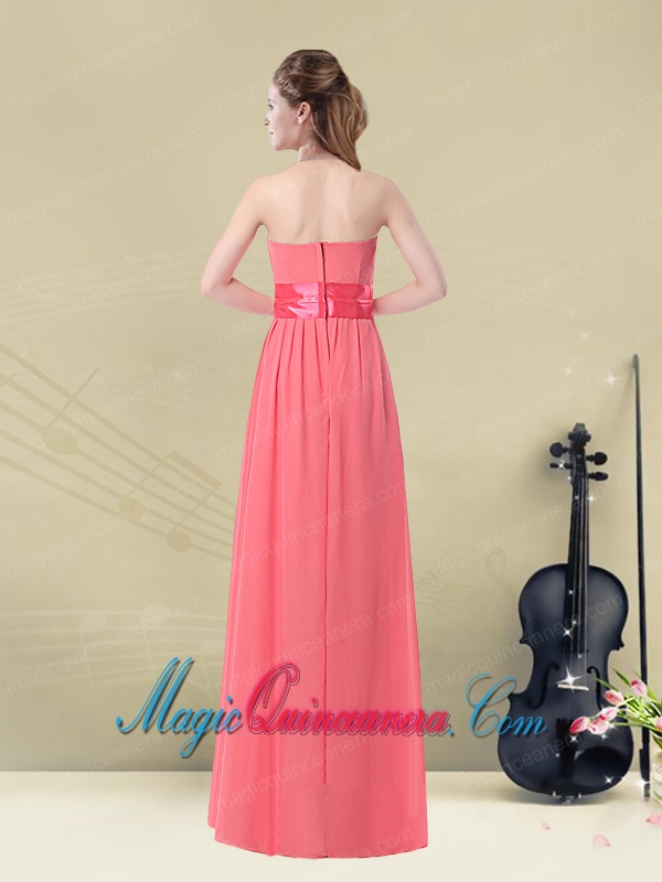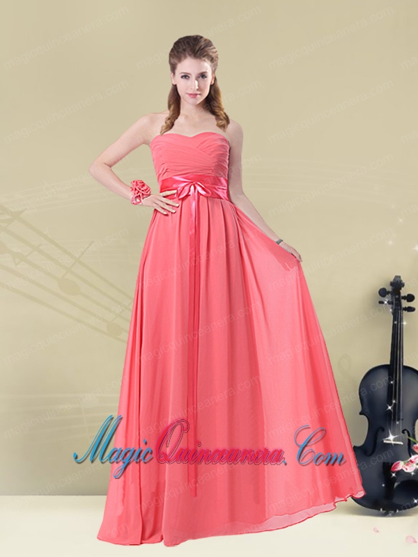 Sweetheart Watermelon Long Bridesmaid Dama Dress with Bow Belt