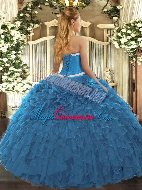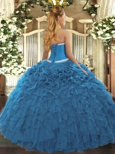 Teal Quinceanera Dress Military Ball and Sweet 16 and Quinceanera with Appliques and Ruffles Sweetheart Sleeveless Lace Up