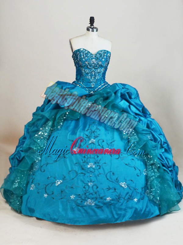 Teal Sleeveless Taffeta Lace Up Quinceanera Dresses for Sweet 16 and Quinceanera