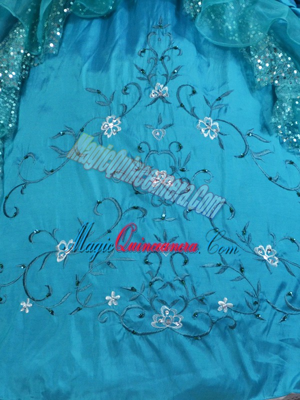 , Teal Sleeveless Taffeta Lace Up Quinceanera Dresses for Sweet 16 and Quinceanera