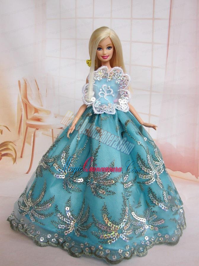 , The Most Amazing Blue Dress With Sequins Made to Fit the Barbie Doll