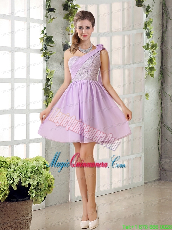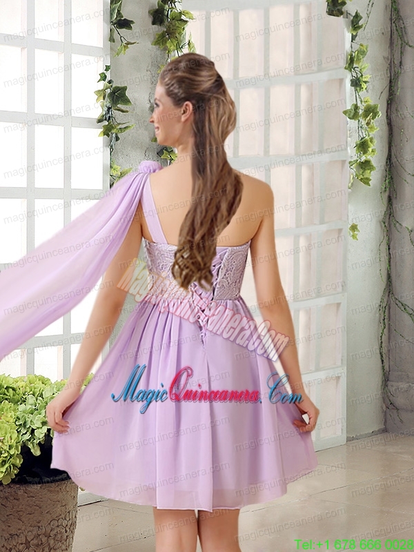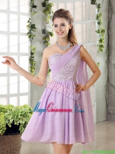 The Most Popular Lilace One Shoulder A line Mother Dress for Quinceanera with Rushing