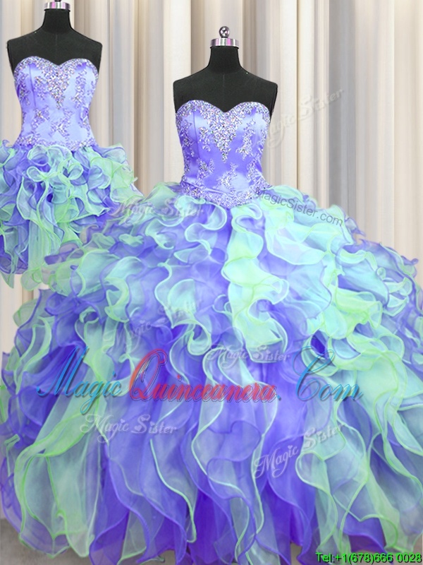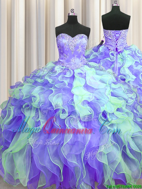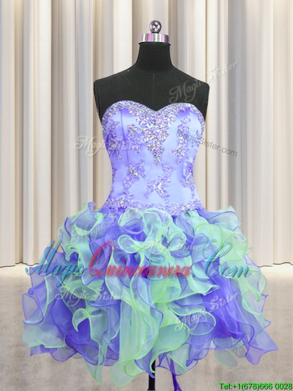 Three Piece Multi-color Sleeveless Beading and Ruffles 15th Birthday Dress