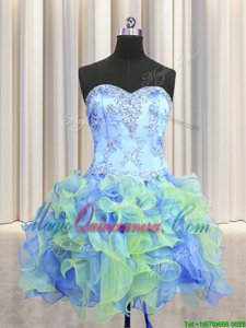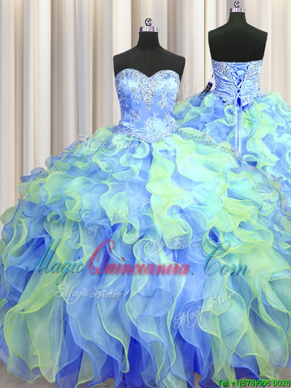 Three Piece Multi-color Lace Up Sweetheart Beading and Appliques and Ruffles 15th Birthday Dress Organza Sleeveless