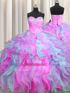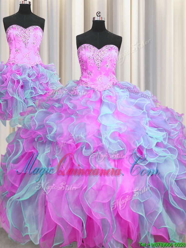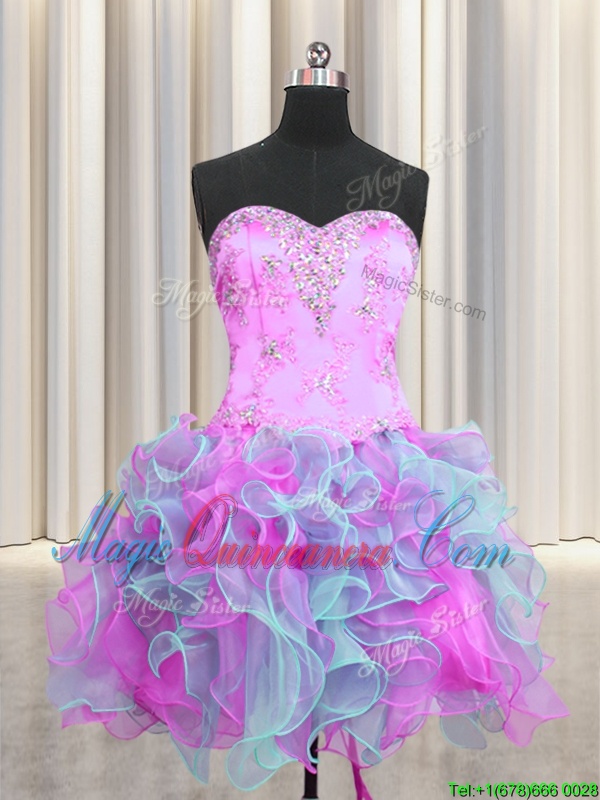 Three Piece Multi-color Sleeveless Beading and Ruffles 15th Birthday Dress