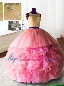 Three Piece Scoop Sleeveless Brush Train Beading and Lace and Ruffles Zipper 15 Quinceanera Dress