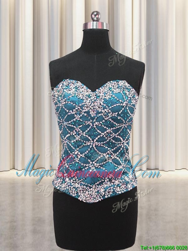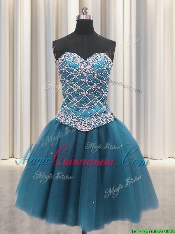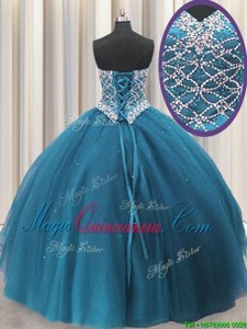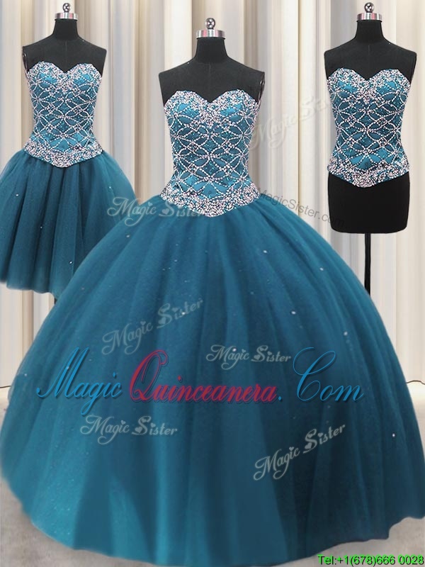 Three Piece Teal Tulle Lace Up Sweetheart Sleeveless Floor Length Quinceanera Dresses Beading and Ruffles