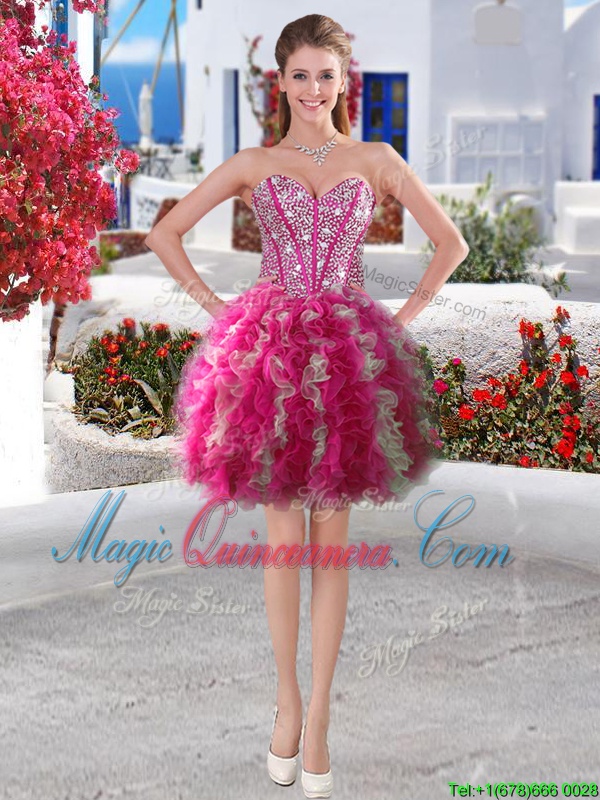 Three Piece White and Hot Pink Quinceanera Dress Military Ball and Sweet 16 and Quinceanera and For with Beading Sweetheart Sleeveless Lace Up