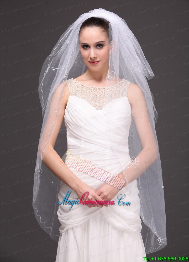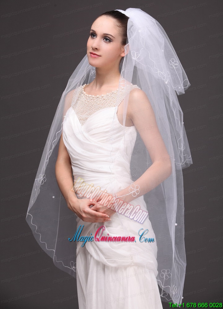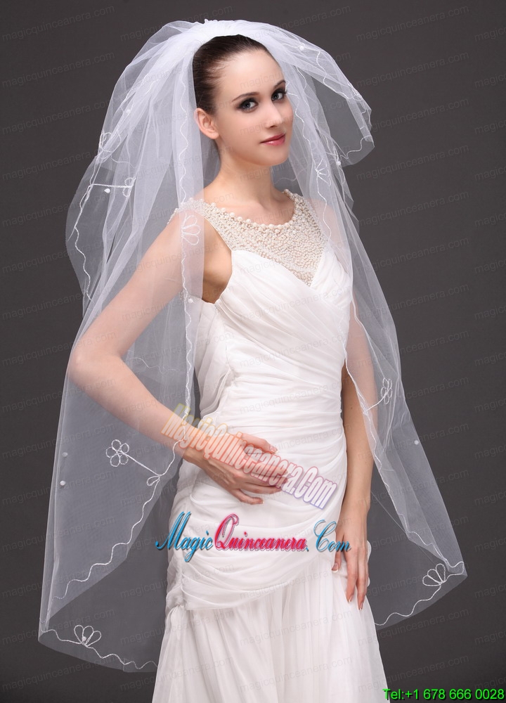 Three tier Tulle With Embroidery Bridal Veil