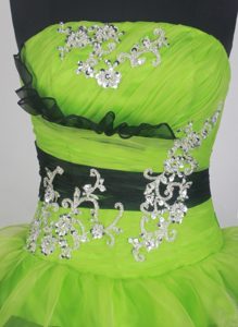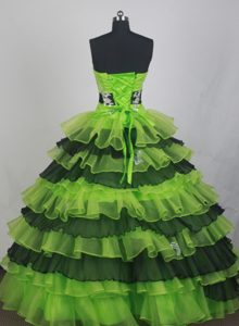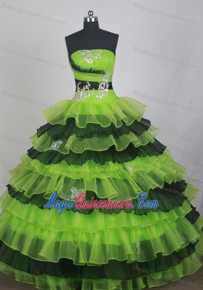 impressive appliqued quinceanera dress in mendoza, Tiered Spring Green and Black Quinceanera Dresses with Appliques