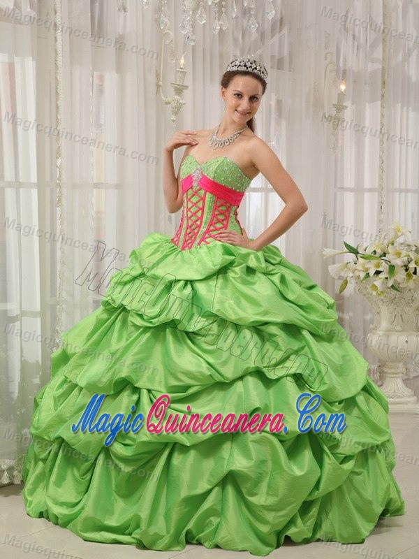 Toluca Mexico Spring Green Sweetheart Quinceanera Gowns Pick ups