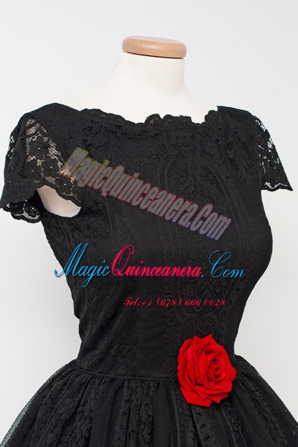 Top Selling Bateau Cap Sleeves Lace Mother of the Bride Dress Hand Made Flower Backless